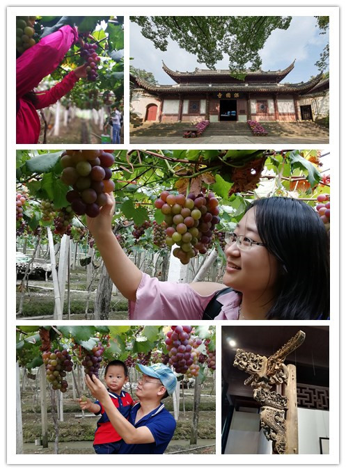 隨后大家沿著青石小路緩緩走進(jìn)那片充斥著誘人香味的汶溪葡萄園,一串串鮮艷似瑪瑙,碧綠若翡翠的葡萄沉甸甸地懸掛在枝葉蔓幕間,誘惑著在場每一位的視覺和味覺。大家迫不及待的拿著果剪小心地將那一整串葡萄剪下來,塞一顆在嘴里,咬上一口,汁液四濺,甜到心里,歡聲笑語充滿了整個(gè)果園,最后大家都滿載而歸。