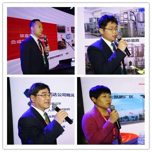 左上:中科遠(yuǎn)東市場(chǎng)總監(jiān)趙柏;右上:中科院寧波材料所博士李通;左下:中國(guó)成達(dá)工程有限公司副總王允升;右下:華魯恒升副總工程師高嵐